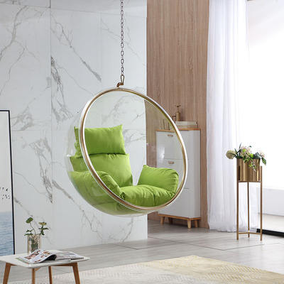 A hanging chair, also known as a hammock chair or swing chair, is a type of suspended seat designed for relaxation and comfort. It is typically made of a fabric or mesh material and suspended from a frame or a ceiling-mounted hook using ropes, chains, or other hardware. Hanging chairs come in a variety of shapes and sizes, ranging from basic bucket-shaped designs to more elaborate and ornate styles. They can be used indoors or outdoors and provide a unique and comfortable seating experience. Many hanging chairs also come with cushions and other accessories for added comfort and style.